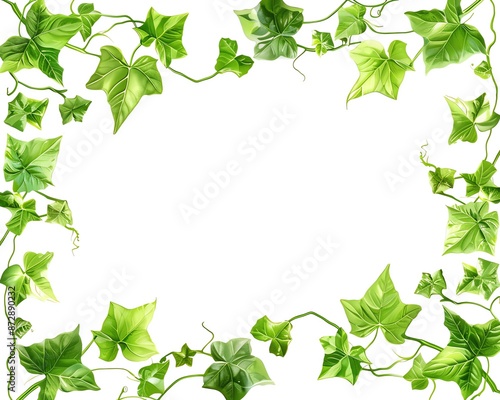 Ivy leaf frame clipart, foliage border, handdrawn style, green and white, isolated on white background,