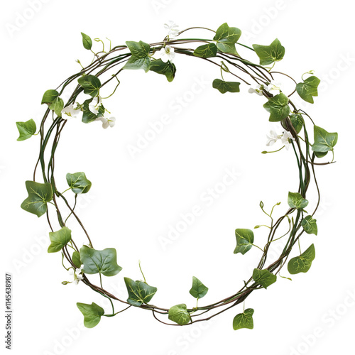 Ivy Vine Wreath with Flowers Isolated on Transparent Background