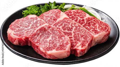 Japanese A5 Wagyu steak with herbs.