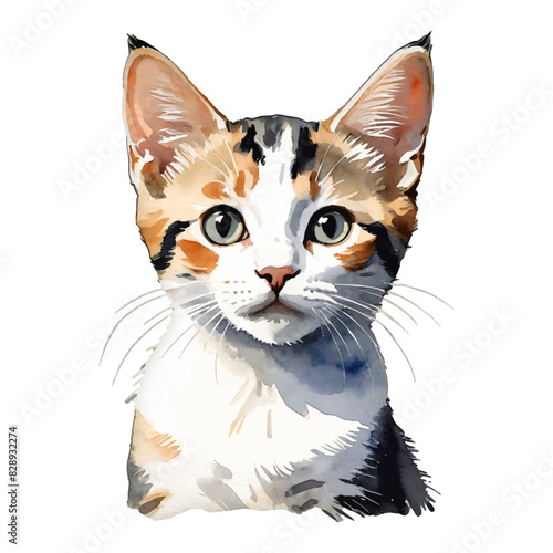 Japanese Bobtail Cat Kitten Hand Drawn Watercolor Painting Illustration