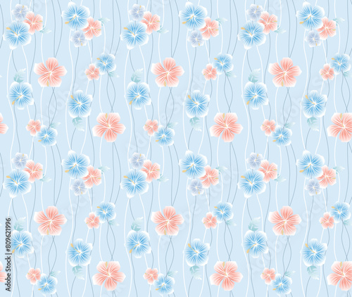 Japanese Soft Hibiscus Flower Vector Seamless Pattern