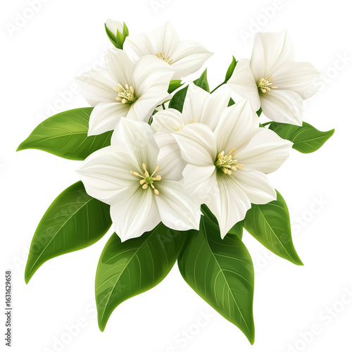 Jasmine flower buds, fresh and delicate, front view design on transparent png background. Ai generated