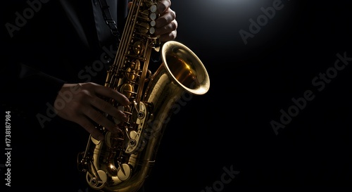 Jazz Saxophone Player: Close-up of Hands on Brass Instrument for Music, Performance, and Night Club Vibe