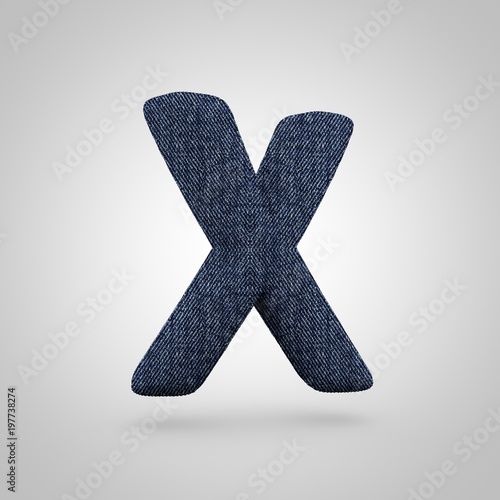 Jeans letter X uppercase with blue denim texture isolated on white background.