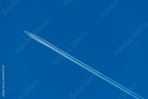 Jet in flight near Iceland, blue sky