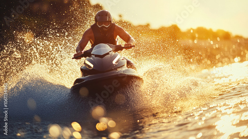 Jetski in water. Summer tropical sports.
