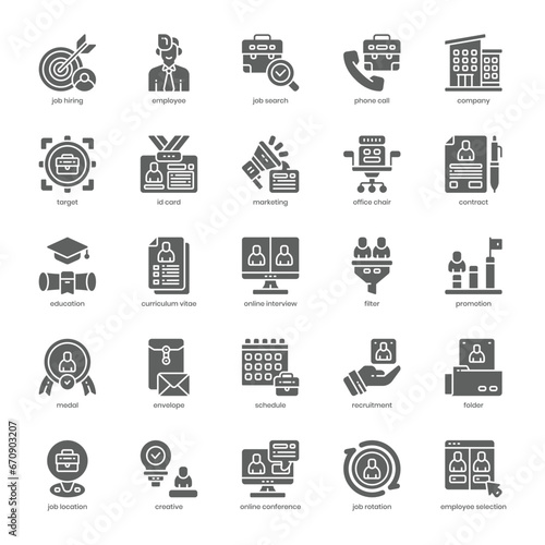Job Hiring icon pack for your website design, logo, app, and user interface. Job Hiring icon glyph design. Vector graphics illustration and editable stroke.