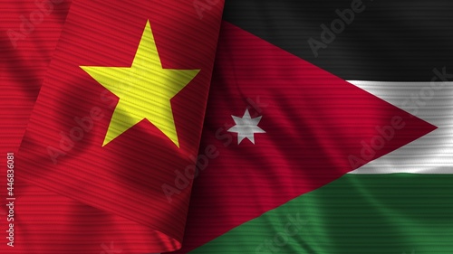 Jordan and Vietnam Realistic Flag – Fabric Texture 3D Illustration
