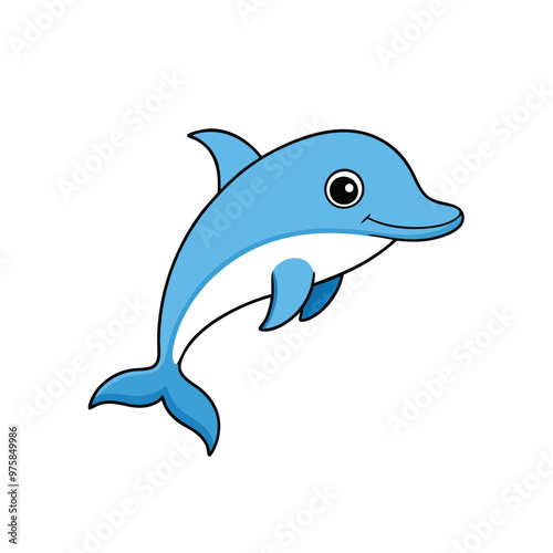 Joyful cartoon dolphin vector with clean lines, ideal for kids and educational materials.