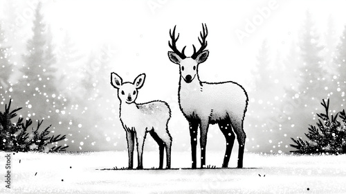 Joyful Christmas Illustration for Kids: Simple Coloring Book Page with Festive Elements and Playful Characters.