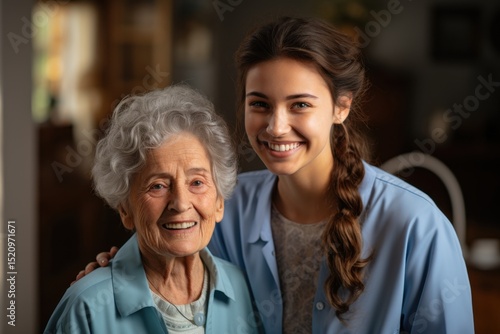 Joyful intergenerational bonding between grandmother and granddaughter at home heartwarming portrait warm environment close-up