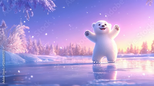 Joyful Polar Bear Cub on a Winter Wonderland Adventure in Pastel Colors
