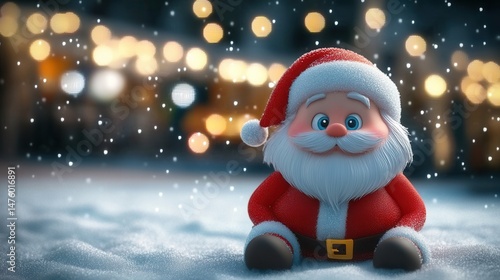 Joyful Santa Claus Figurine in Snowy Scene with Festive Lights