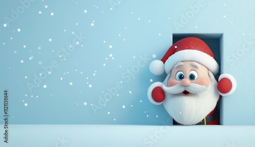 Joyful Santa Claus Peeking Through Snowy Wall: Festive Winter Holiday Cheer Animation