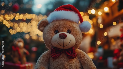 Joyful Teddy Bear in Santa Hat Surrounded by Christmas Decorations