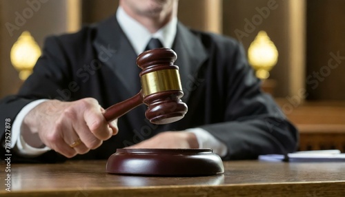 Judge slamming the Gavel - Making Judgement - Ending the Court Process - Judge sitting at Courtroom Table