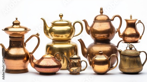 jug, Copper desert tea pot, antique metal teapot isolated on white background, antique kettle, golden teapot, metal teapot, Chinese tea pot on white background, antique teapot, golden tea pot, metal
