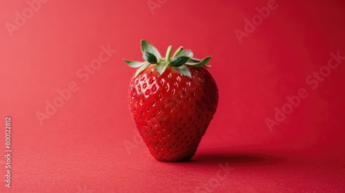 Juicy red strawberries on a red background. Summer harvest, sweet snack.