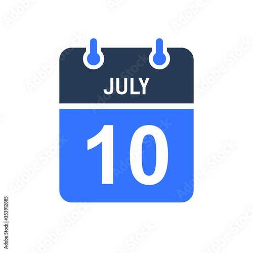 July 10 Calendar Date Icon, Event Date Icon, Calendar Date, Icon Design Vector Graphic