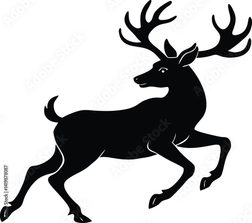jumping silhouette icon, happy deer head silhouette vector symbol, deer head silhouette, head of a deer, smiling deer cartoon character head icon on white background.