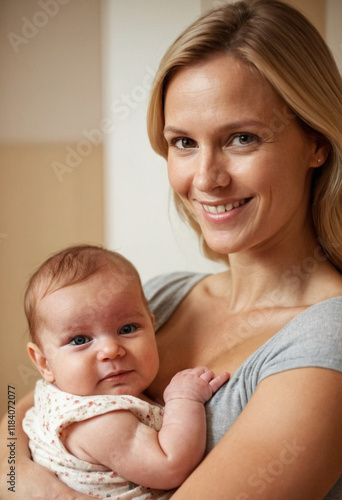 Junge Mutter mit ihrem Neugeborenen Kind