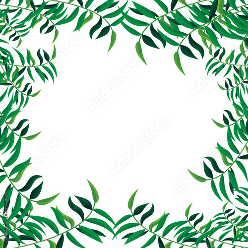 Jungle leaves frame isolated on white background. For poster, placard, backdrop and banner. Useful for flyer, leaflet and wallpaper template. Creative art concept, leaves vector background