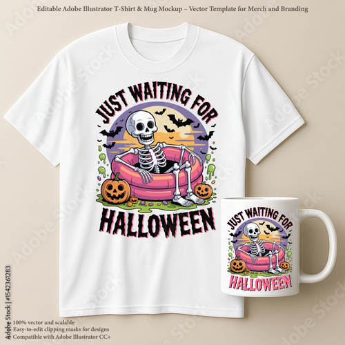 Just Waiting for Halloween Shirt & Mug – Funny Skeleton Couch Halloween Lover Gift