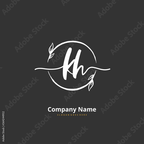 K H KH Initial handwriting and signature logo design with circle. Beautiful design handwritten logo for fashion, team, wedding, luxury logo.