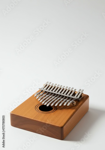 Kalimba Musical Instrument Wooden Box with Metal Tines on White Background