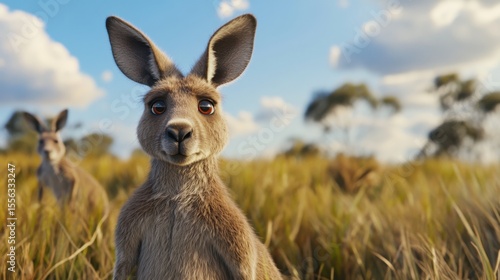 Kangaroo family observing surroundings australian outback wildlife photography grassland close-up natural behavior