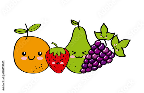 kawaii fruits icon over white background. colorful design. vector illustration
