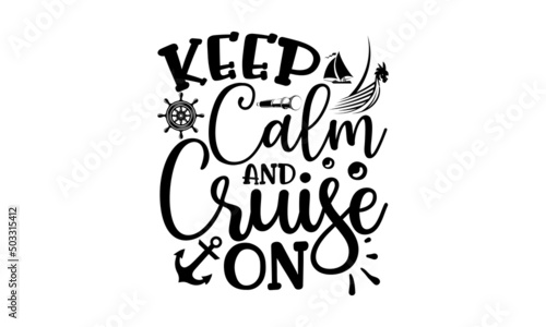 Keep Calm And Cruise On, Hand lettered Isolated vector words on white background for poster, travel, sea, ocean, Vector Design element for travel company, Modern brush lettering print