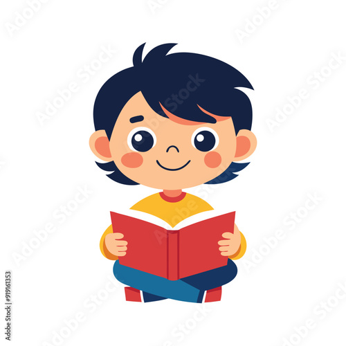 Kid Read Book with isolated vector illustration