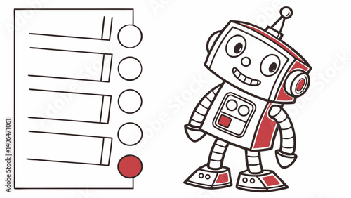 kids coloring page, a friendly robot with an antenna on its head, cartoonish, friendly, thick outlines
