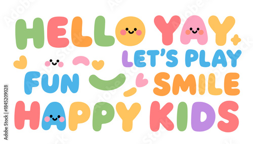 Kids Fun Typography Vector Illustration, Playful Cartoon Text Design for Children Learning and Creative Education