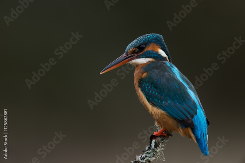 Kingfisher (Alcedo Atthis)/Kingfisher perched on lichen covered branch