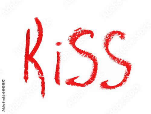kiss word romantic xoxo written by lipstick trace red on white background