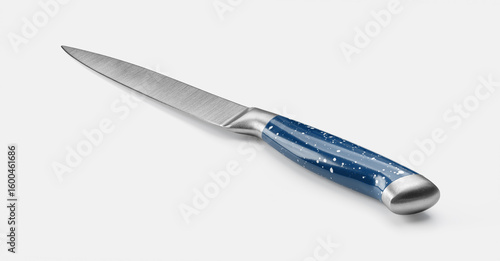Kitchen knife on a white background. Metal kitchen knife with a metal handle.