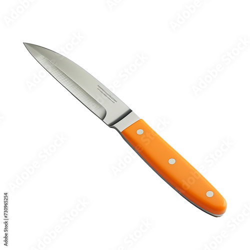 Kitchen knife with orange steel blade with saved path isolated on transparent background