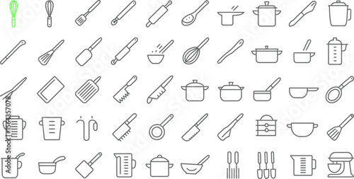 Kitchen utensils vector icons set, cooking tools and equipment, kitchenware outline illustration design