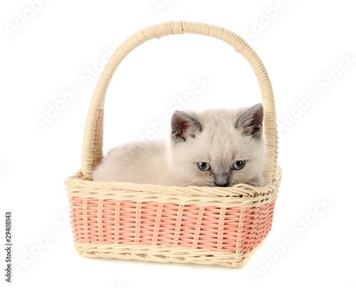 kitten in a basket, isolated.