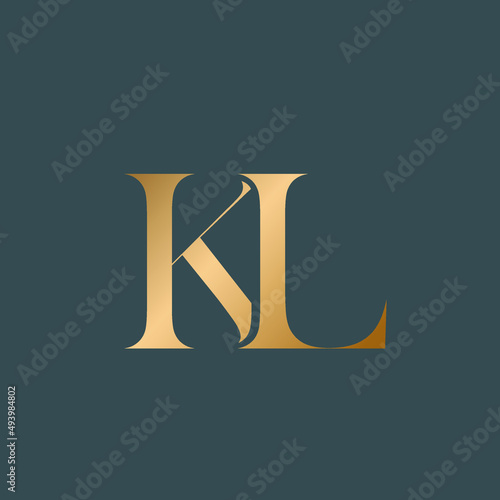 KL monogram logo.Typographic signature icon.Letter l and letter k.Lettering sign isolated on dark background.Wedding, fashion, beauty alphabet initials.Elegant, luxury style characters.