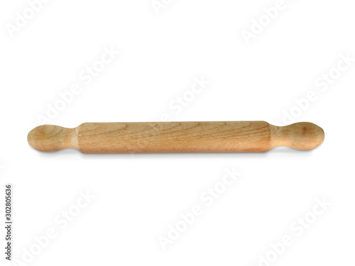 kneading roller.- Wooden rolling pin isolated on white background. Vintage. Wooden rolling pin with clipping path. White background. Domestic kitchen.