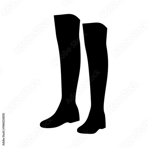 knee high boots vector silhouette icon, black and white illustration of footwear.