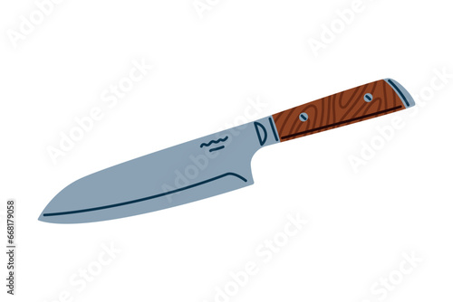 Knife with Sharp Steel Blade and Handle as Cooking Utensil Vector Illustration