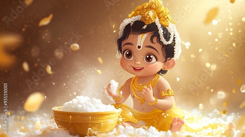 Krishna Janmashtami, Little Krishna with a pot filled with white butter