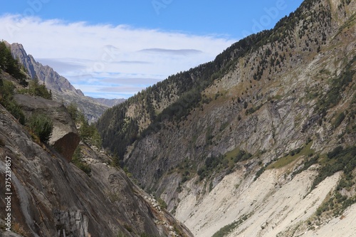 La mer de glace en été, glacier sur le massif du Mont Blanc dans les Alpes, ville de Chamonix, département de Haute Savoie, France