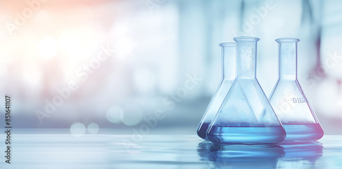 Lab glassware in medical laboratory, banner with copy space for text