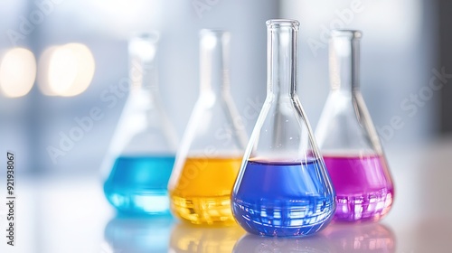 Lab Glassware with Colored Substance: Vibrant Chemistry Experiment in a Laboratory Setting