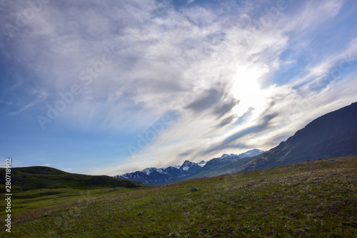 Labdsacpe of mountains and grasslands in Olgi, Mongolia.